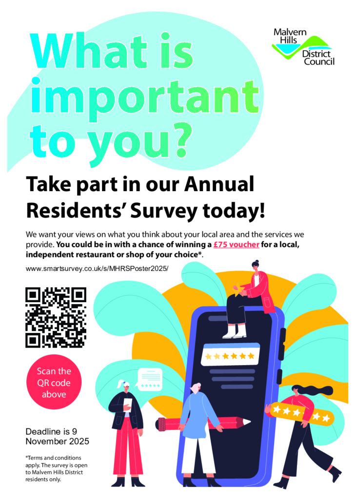 If you are a resident of the Malvern Hills District, we want your views on a variety of different topics, including what you think of your local area and the services we provide.